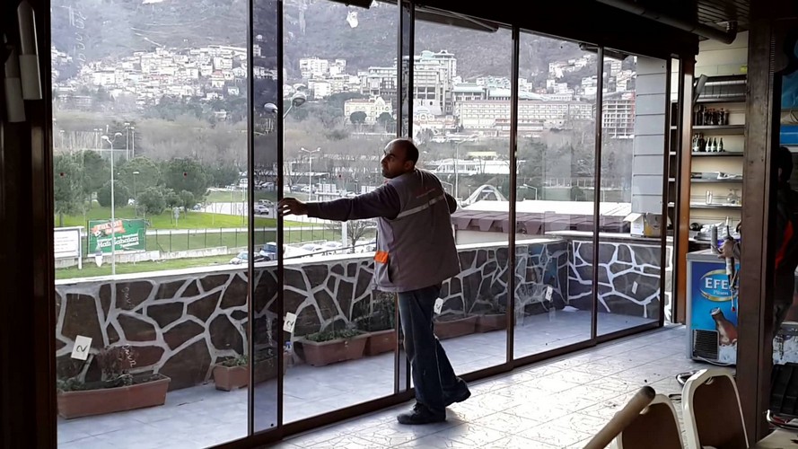 Uygulanan alanlarda yer tasarrufu sağlar. Camlar üst üste toplandığı için yer kaplamaz. Kullanımı rahat ve kolaydır. Çift ray üzerinde yürüdüğü için camların dengesinde bozulma veya öne doğru sarkma olmaz. Kullanım Alanları – Sektörleri Oval balkonlar (yuvarlak) hariç tüm alanlara uygulana bilen bir sistemdir. Kullanılan Malzemeler – Kalitesi Camlar 8 mm temperli rodajlı camdır. Alt ve üst alüminyumlar 6 mm et kalınlığına sahiptir. Cam aralarında metal ve 1200 mm kalınlığında kıl fitilli contalar sayesinde rüzgar, yağmur almaz. Teknik Özellikleri – Ölçüleri Sürme cam balkon da camlar 5’li gruplar halinde toplanır. İstenilen sayıda kanat uygulanabilir. Eşiksiz sürme cam da altta 6 mm kalınlığında bir çıta bulunur.