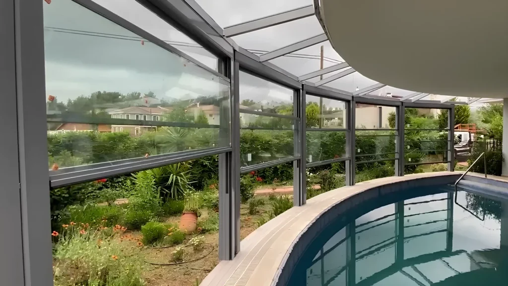 Alanı tamamen açma veya yarı açık kullanım imkânı sunarak dört mevsim konfor sağlar.