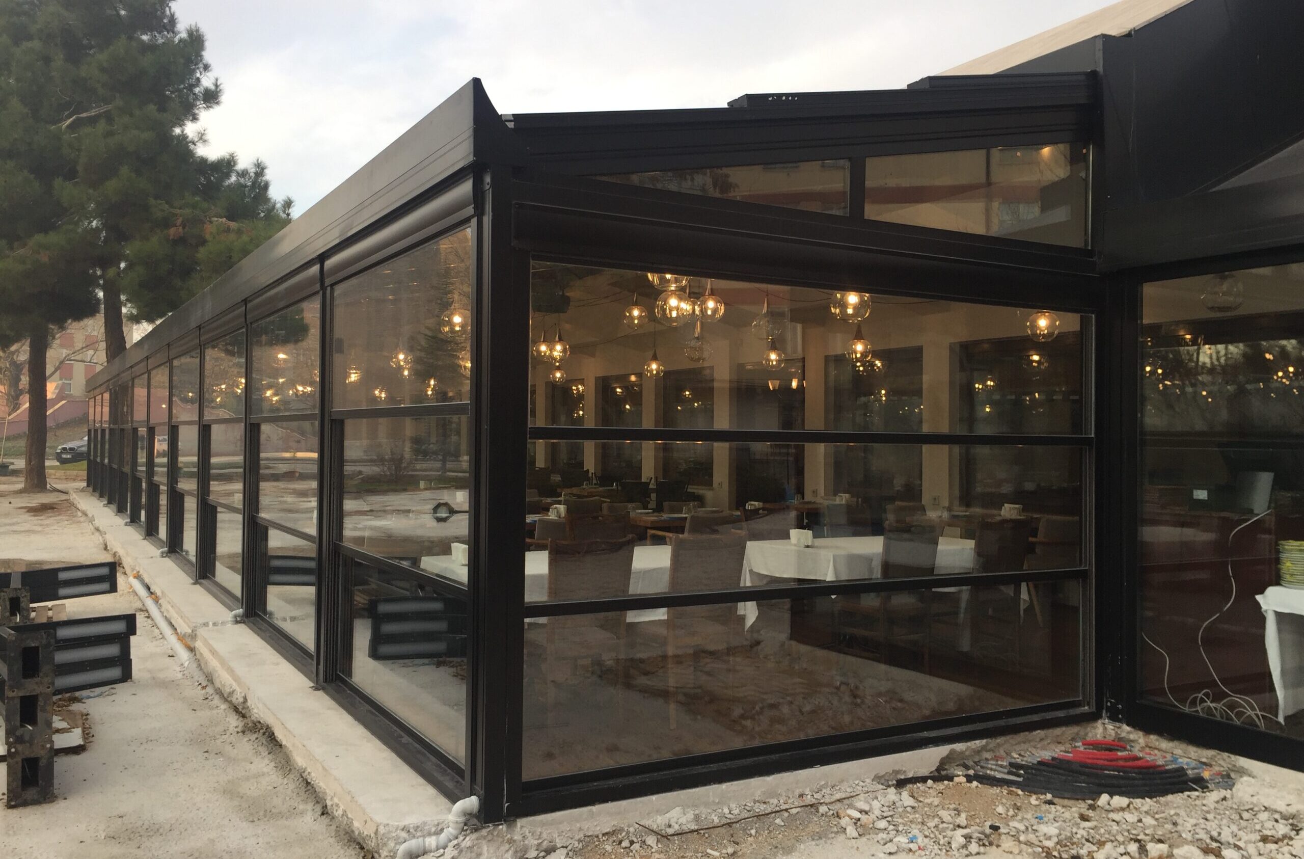 Açılır kapanır cam sistemi sayesinde mekân kapasitesi artırılır. Hava koşullarına göre alan kontrolü sağlanır.